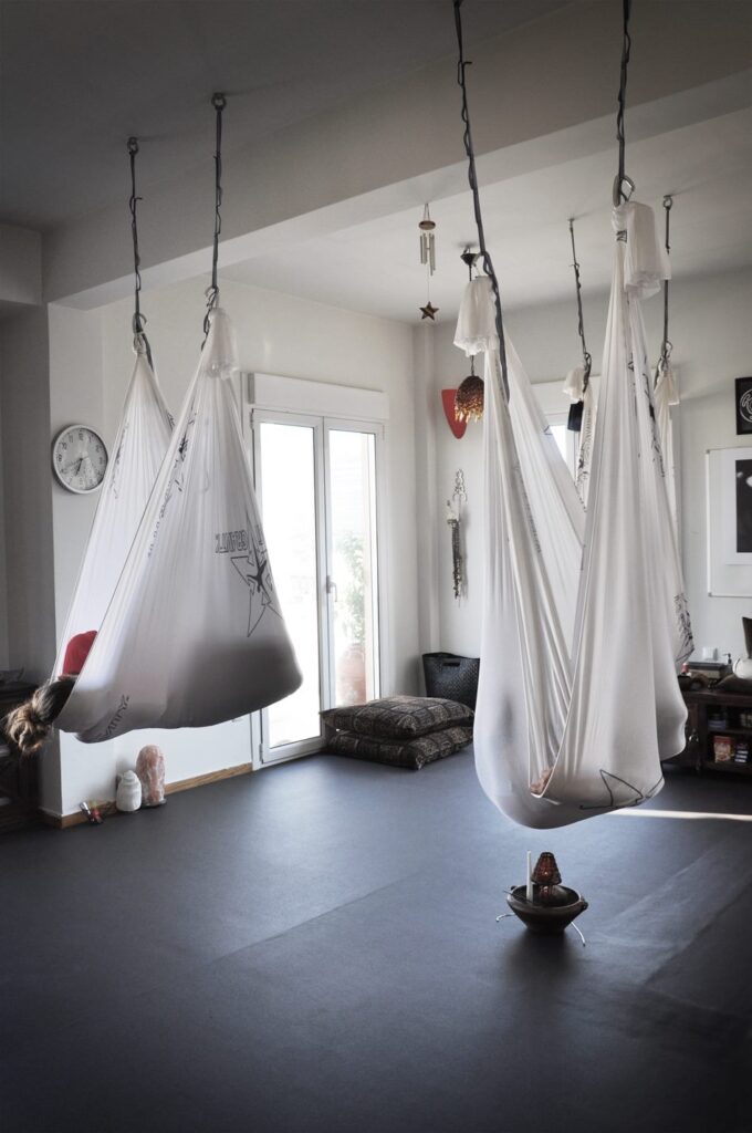 Η εναέρια yoga,ειναι ένα είδος άσκησης, που συνδυάζει τις γνωστές στάσεις yoga,με την ενδυνάμωση του σώματος που προσφέρει η αιώρηση, δηλαδή, η «έλλειψη βαρύτητας», καθώς ο ασκούμενος εξασκείται με τη χρήση μιας αιώρας.